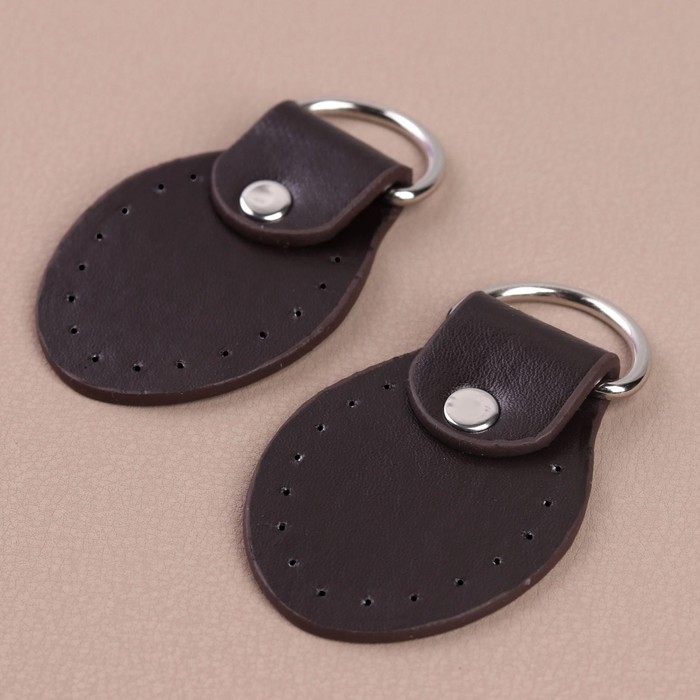 Петля пришивная для сумки, с полукольцом, пара, 8 × 4,5 см, цвет коричневый/серебряный