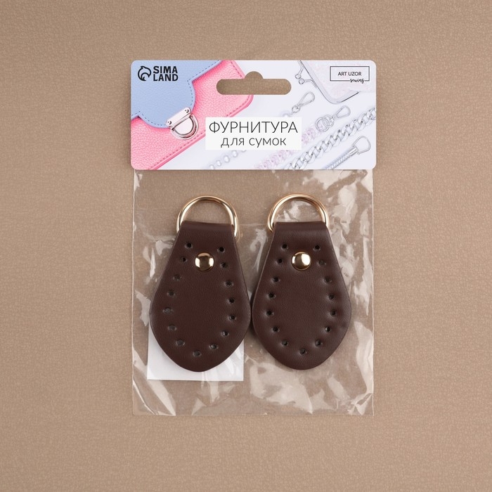 Петля пришивная для сумки, с полукольцом, пара, 7,5 × 4 см, цвет коричневый/золотой