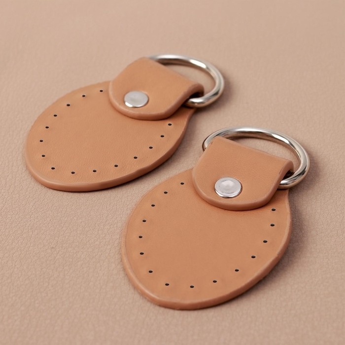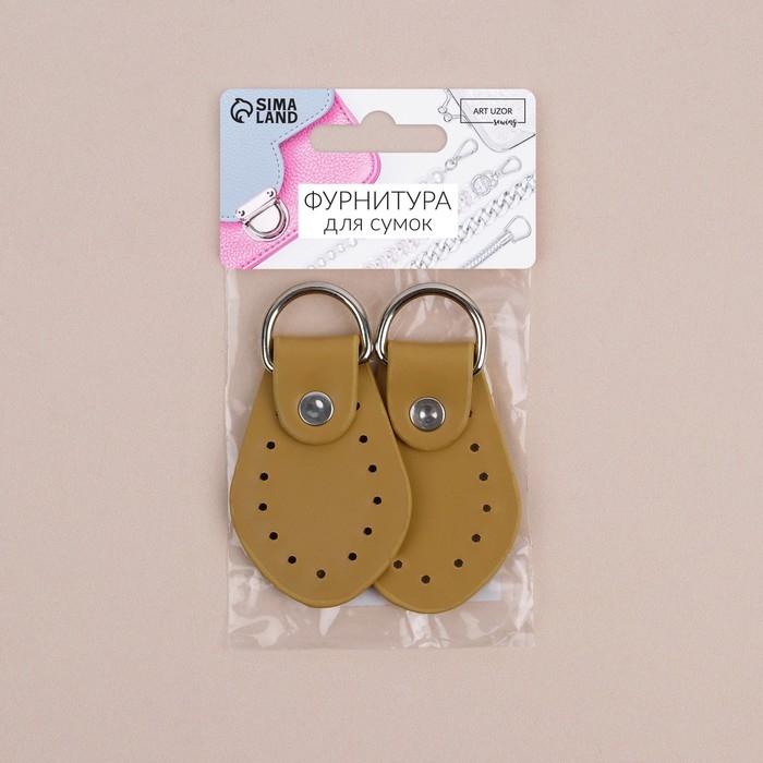Петля пришивная для сумки, с полукольцом, пара, 8 × 4,5 см, цвет бежевый/серебряный