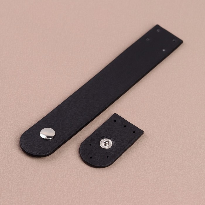 Застёжка пришивная для сумки, на кнопке, 15,5 × 2,5 см / 4,5 × 2,5 см, цвет чёрный/серебряный