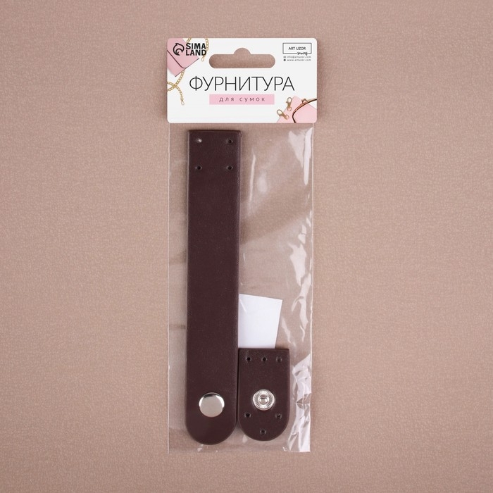 Застёжка пришивная для сумки, на кнопке, 15,5 × 2,5 см / 4,5 × 2,5 см, цвет коричневый/серебряный