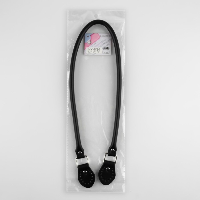 Ручка для сумки, 60 × 1 см, с пришивными петлями 3,5 см, цвет чёрный/серебряный