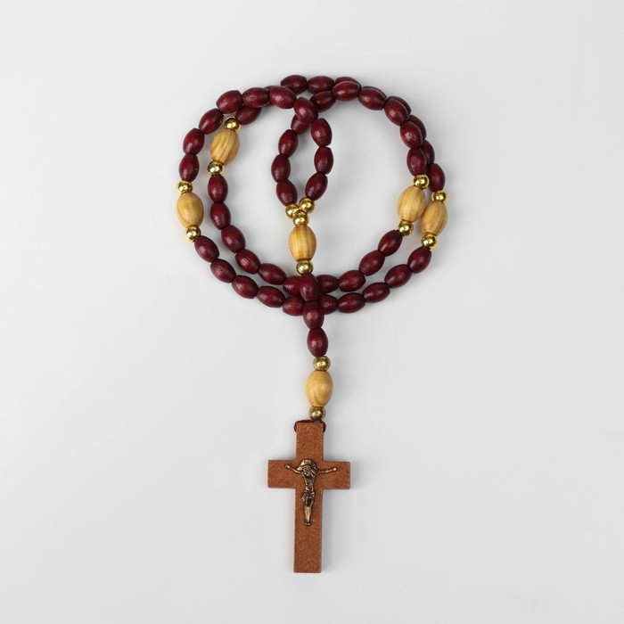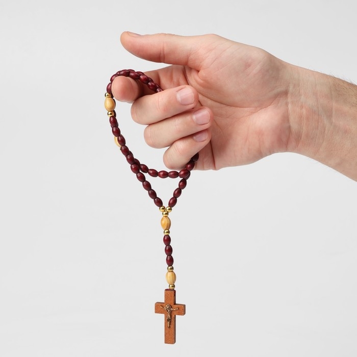 Чётки деревянные «Православные» 50 бусин через шарик, с крестиком, цвет тёмно-коричневый