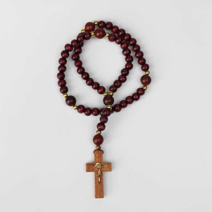 Чётки деревянные «Православные» с крестиком, 50 бусин через золотистый шарик, цвет тёмно-коричневый