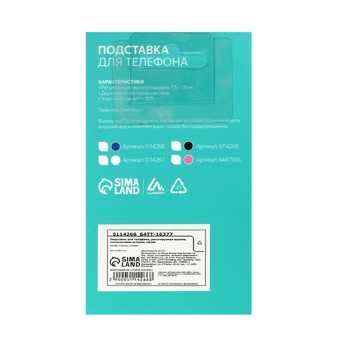 Универсальная подставка позволяет установить в горизонтальном и вертикальном положении смартфон до 7 дюймов. Стильный дизайн отлично вписывается в интерьер. Просматривайте фотографии, видео или читайте книги под удобным углом обзора, благодаря регулируемой конструкции. Силиконовая защита оберегает устройство от скольжения и царапин.