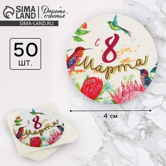 Наклейки для бизнеса и подарков «С 8 марта», 4 х 4 см, 50 шт
