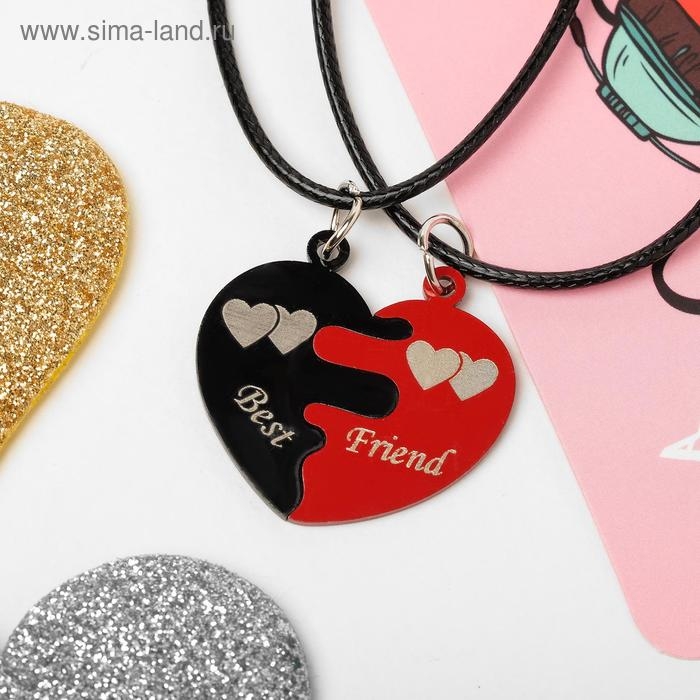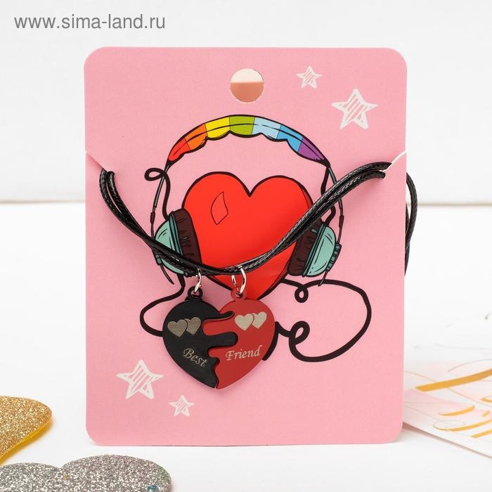 Кулоны на шнурке «Неразлучники» love, две половинки, цвет чёрно-красный, 42 см