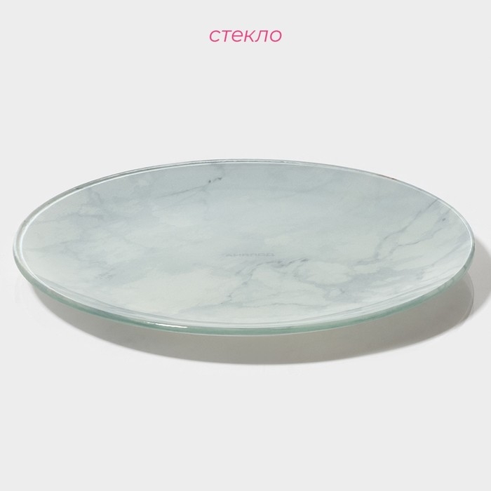 Тарелка стеклянная Доляна «Марбл белый», d=20 см, цвет белый