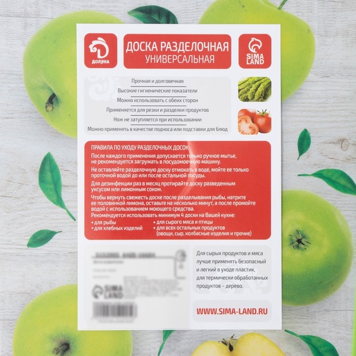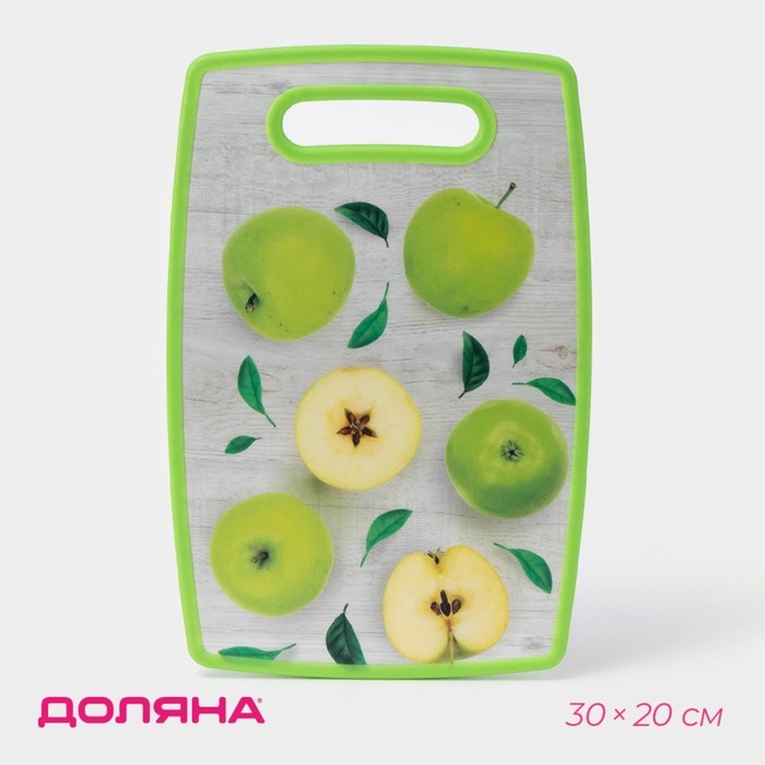 Доска разделочная пластиковая Доляна «Зелёные яблоки», прямоугольная, 30×20 см