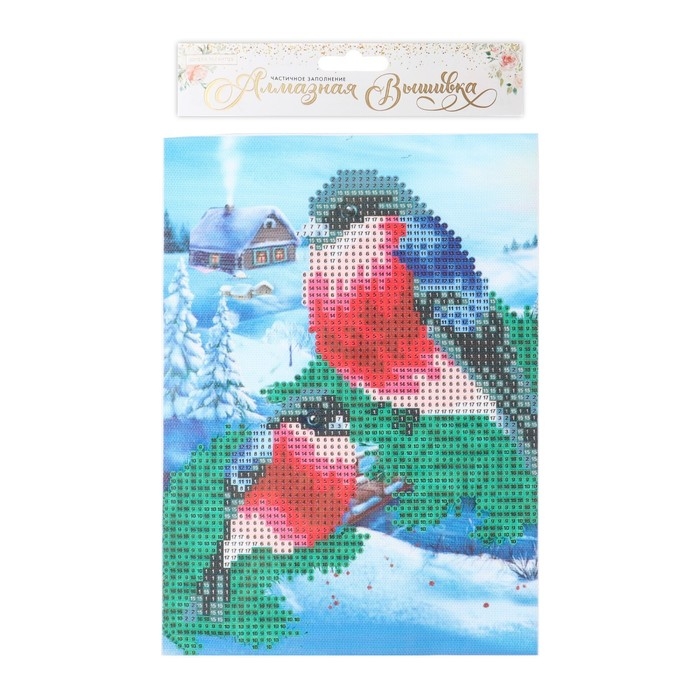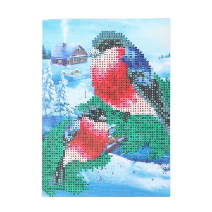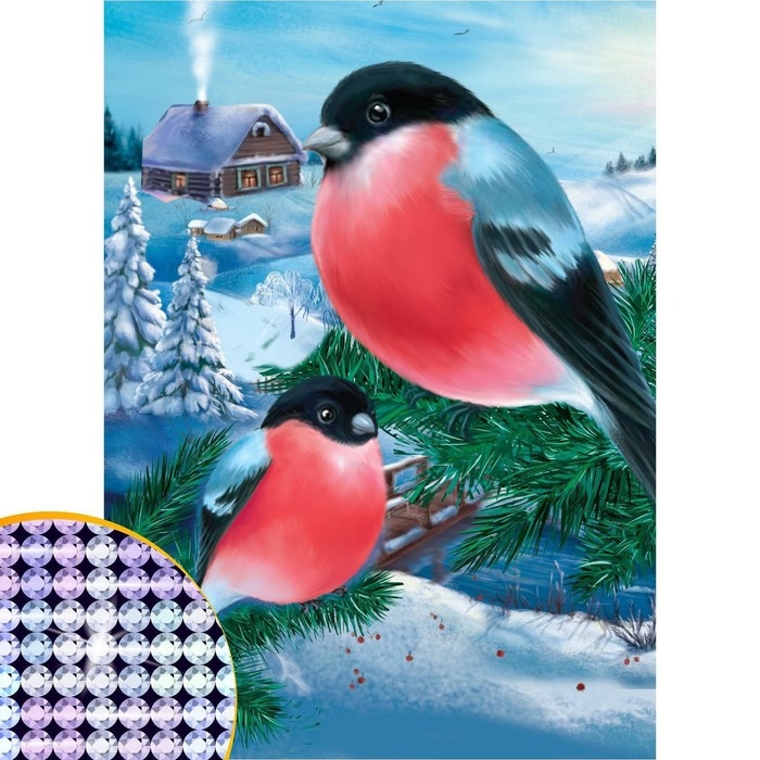 Алмазная мозаика на новый год с частичным заполнением на холсте «Снегири», 15 х 21 см, новогодний набор для творчества