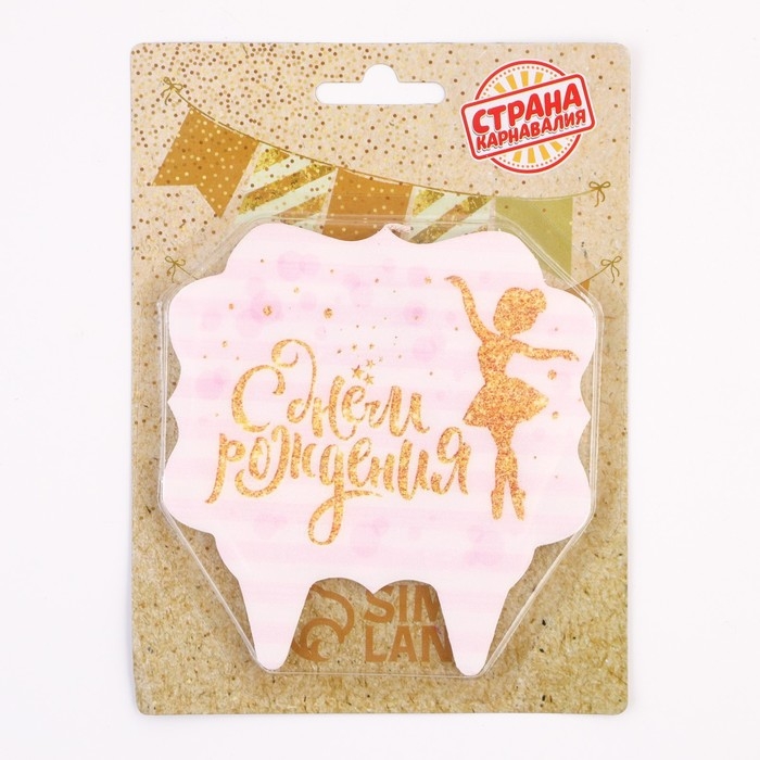 Свеча для торта «С Днём Рождения. Золотая балерина», 8 см