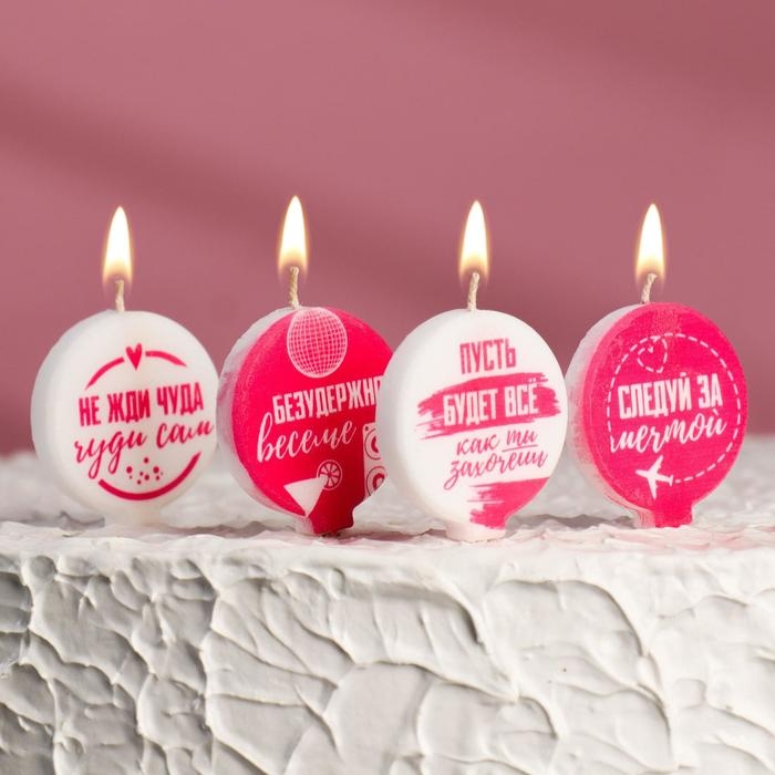 Набор свечей 4 штук "С юмором", розово-белые, 4×4.4 см
