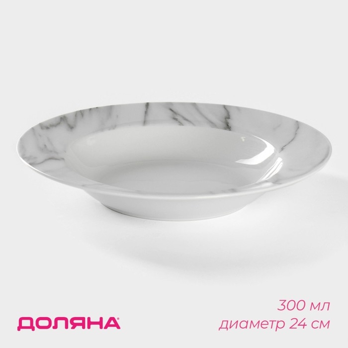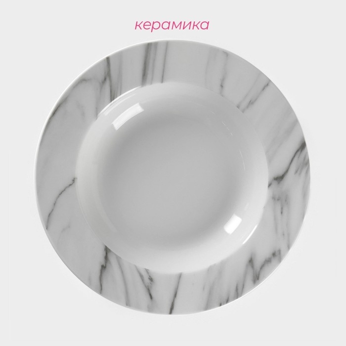 Тарелка глубокая керамическая Доляна «Мрамор», 300 мл, d=21 см, цвет белый и серый