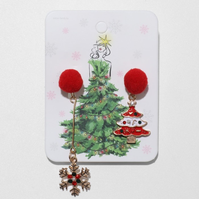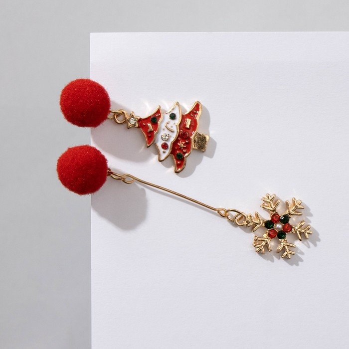 Новый год! Серьги «Новогодние пушистые» елка и снежинка, цветные