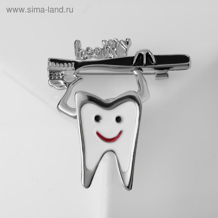 Брошь «Зуб» со щёткой, цвет чёрно-белый в серебре