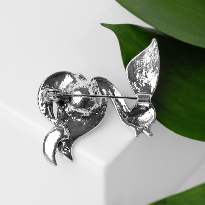 Брошь «Жар-птица» с жемчужиной, цвет бело-радужный в серебре