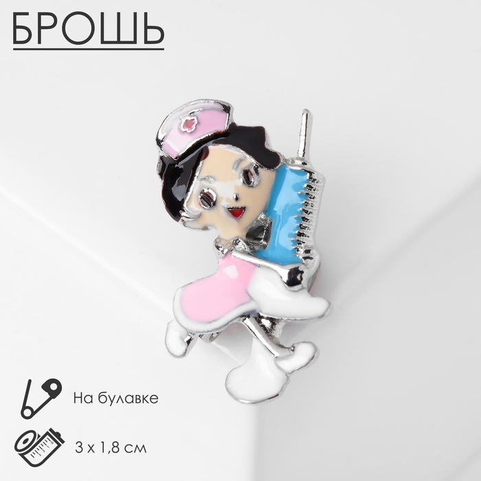 Брошь "Медсестра" с уколом, цветная в серебре