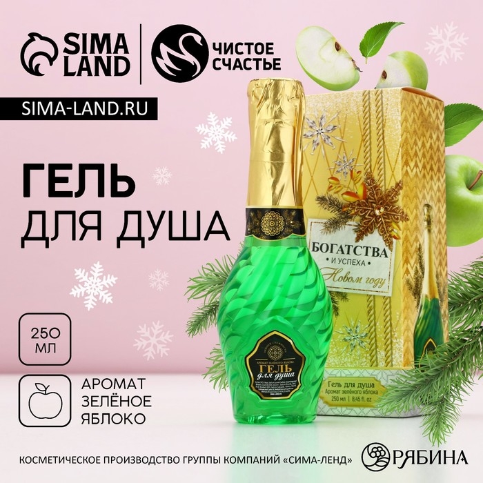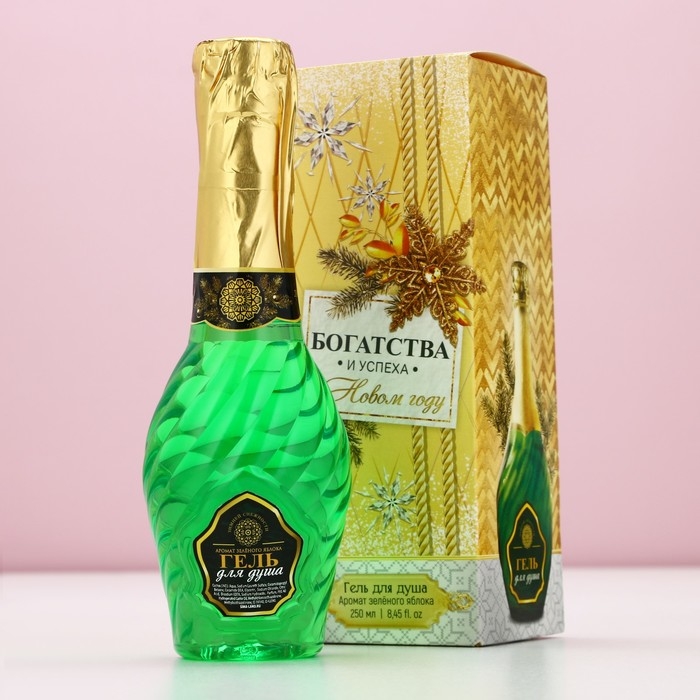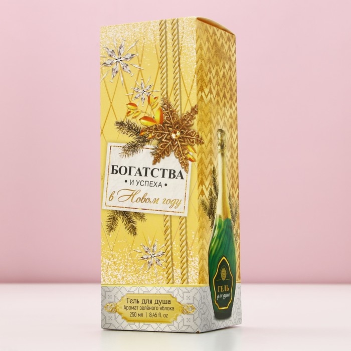 Гель для душа во флаконе мондоро «Богатства и успеха в Новом Году», 250 мл, аромат зеленого яблока, ЧИСТОЕ СЧАСТЬЕ