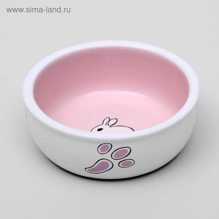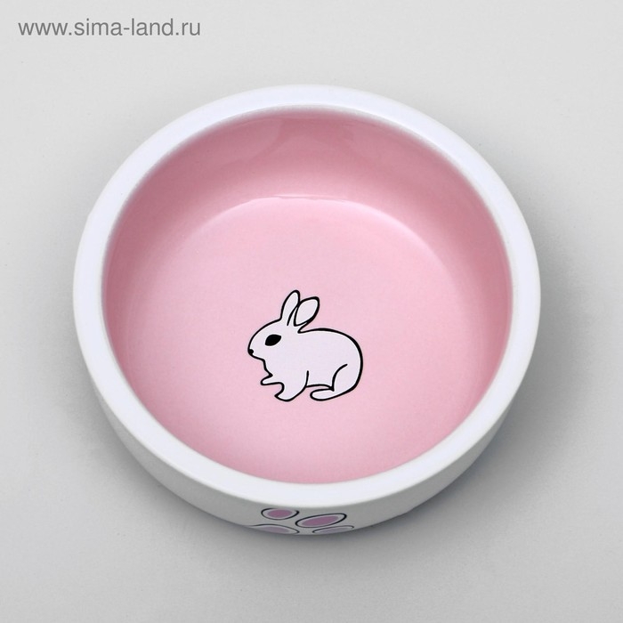 Миска керамическая для кроликов 200 мл 10 х 3,7 см, бело-розовая