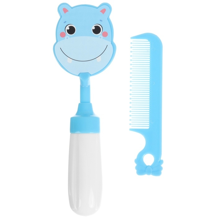 Набор расчёсок с погремушкой «Бегемотик», 2 предмета: расчёска с зубчиками + щётка