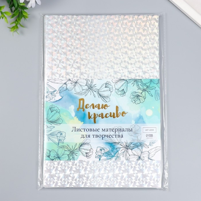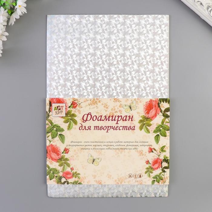 Фоамиран металлизированный "Вспышка серебро" 2 мм формат А4 набор 5 листов