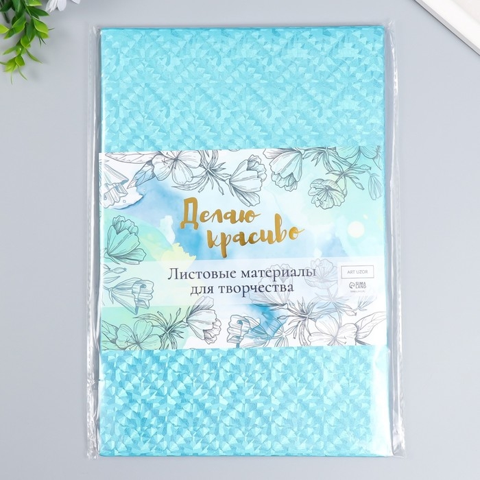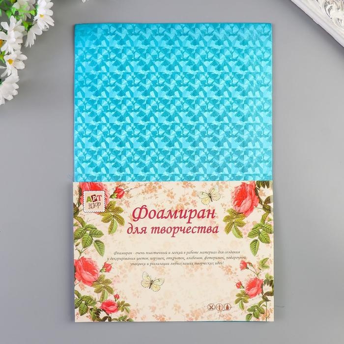 Фоамиран металлизированный "Вспышка голубая" 2 мм формат А4 набор 5 листов