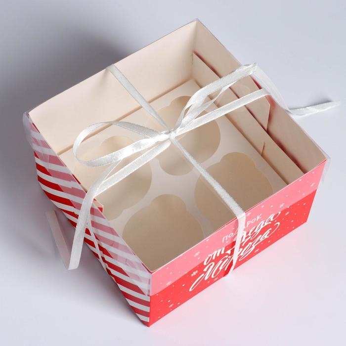 Коробка для капкейка «Подарок от Деда Мороза», 16 х 16 х 10 см, Новый год