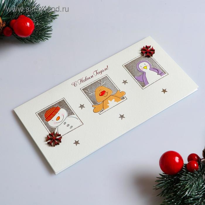 Открытка ЛЮКС "С Новым Годом!" ручная работа, бархатный картон, снеговик, снежинки