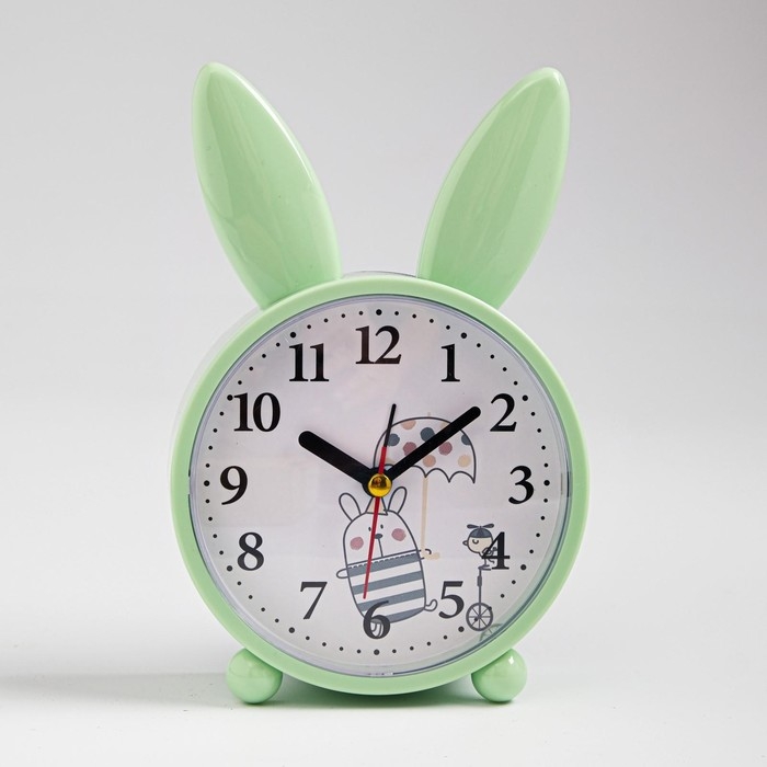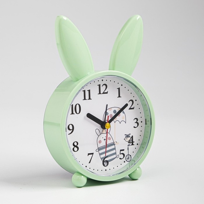 Часы - будильник настольные "Зайчик", плавный ход, циферблат d-10 см, 16.5 х 11 см, АА