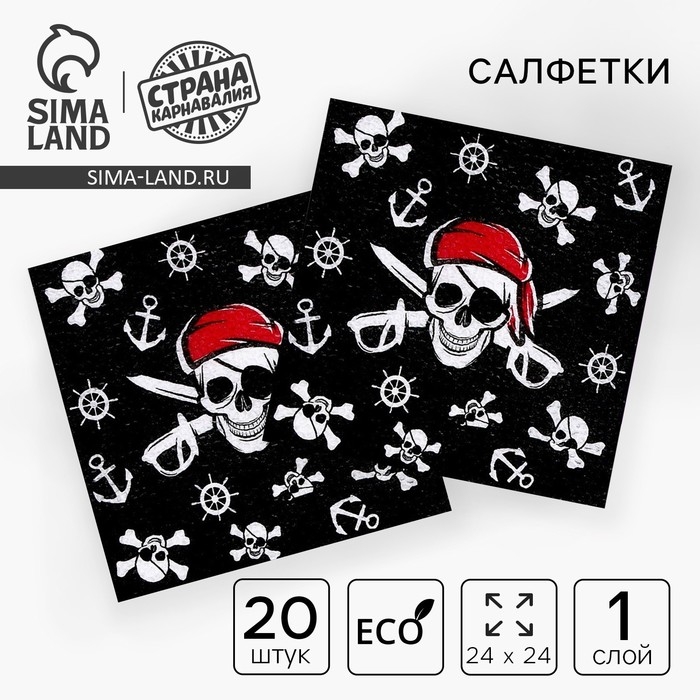 Салфетки бумажные «Пират», однослойные, 24х24 см, набор 20 шт.