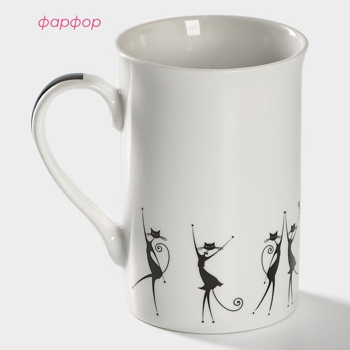 Кружка фарфоровая Доляна «Чёрные кошечки», 300 мл, цвет белый