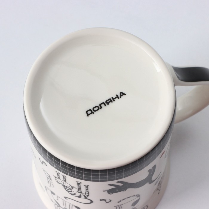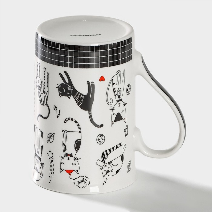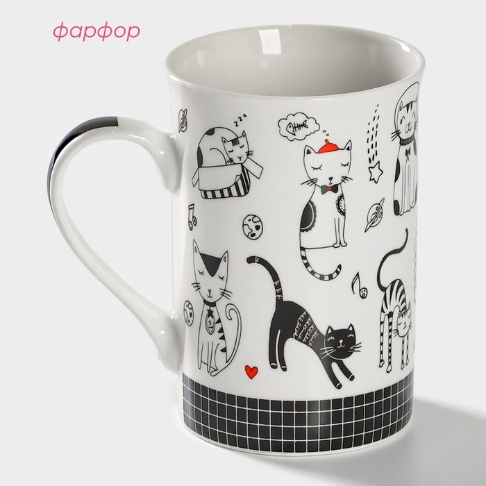 Кружка фарфоровая Доляна «Кошачьи будни», 300 мл, цвет белый
