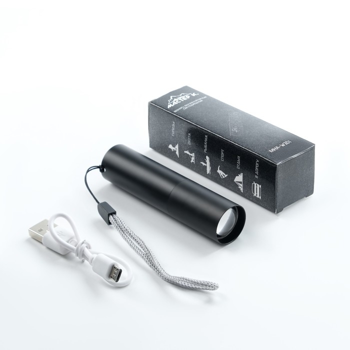 Фонарь ручной, аккумуляторный "Мастер К.", 3 Вт, 500 мАч, 100 лм, zoom, USB