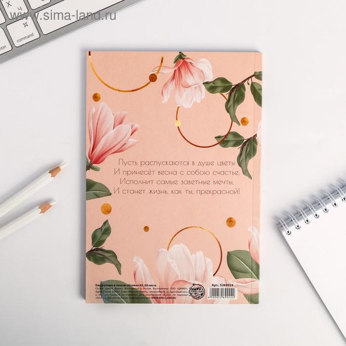 Ежедневник в точку «С 8 МАРТА нежный», А5, 64 листа