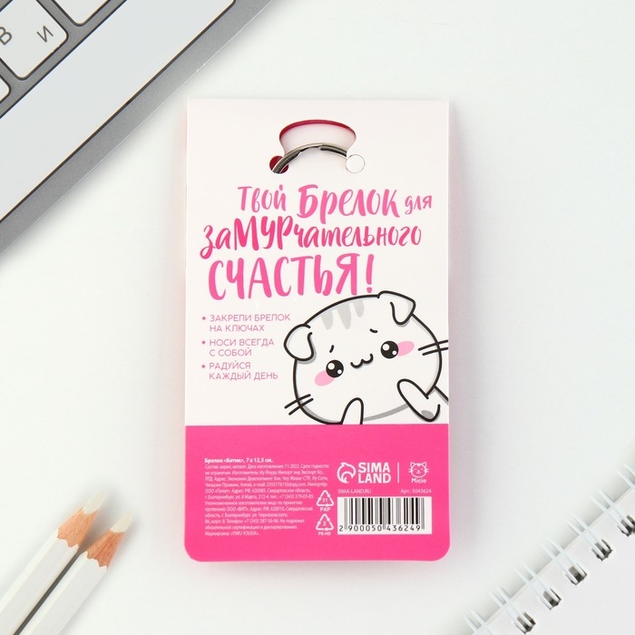 Брелок для ключей акриловый «Котик», 7 х 12,5 см