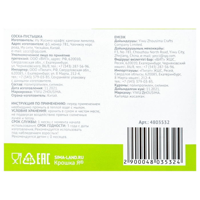 Безопасность и качество товара подтверждены сертификатом соответствия ЕАС.