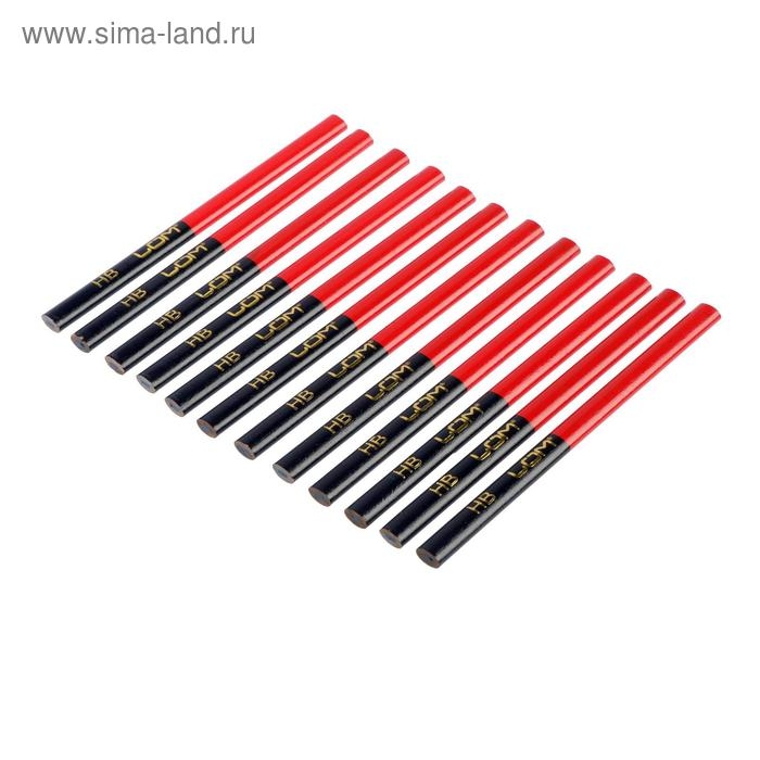 Карандаши строительные ЛОМ, двухцветные, 180 мм, 12 шт.