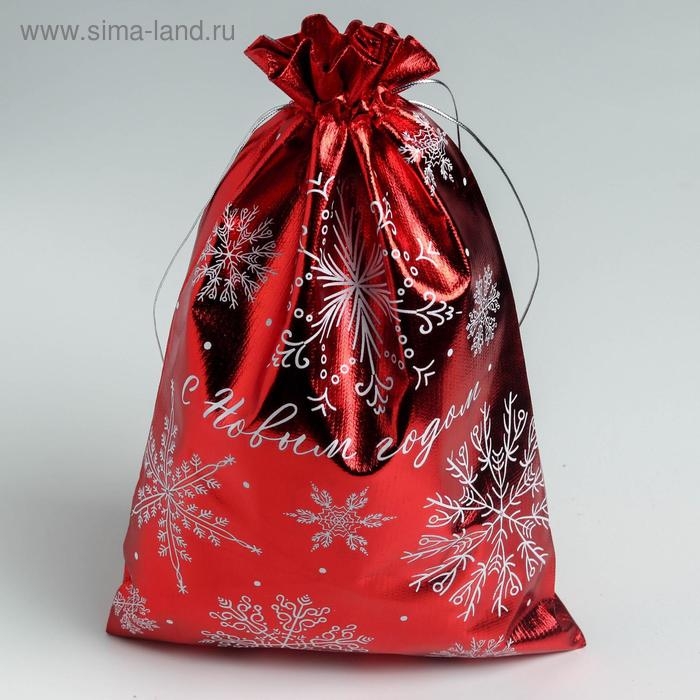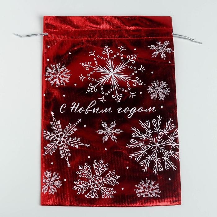 Мешочек подарочный плюш «Мешок Деда Мороза», снежинки, тиснение, 16 х 24 см +/- 1.5 см, Новый год
