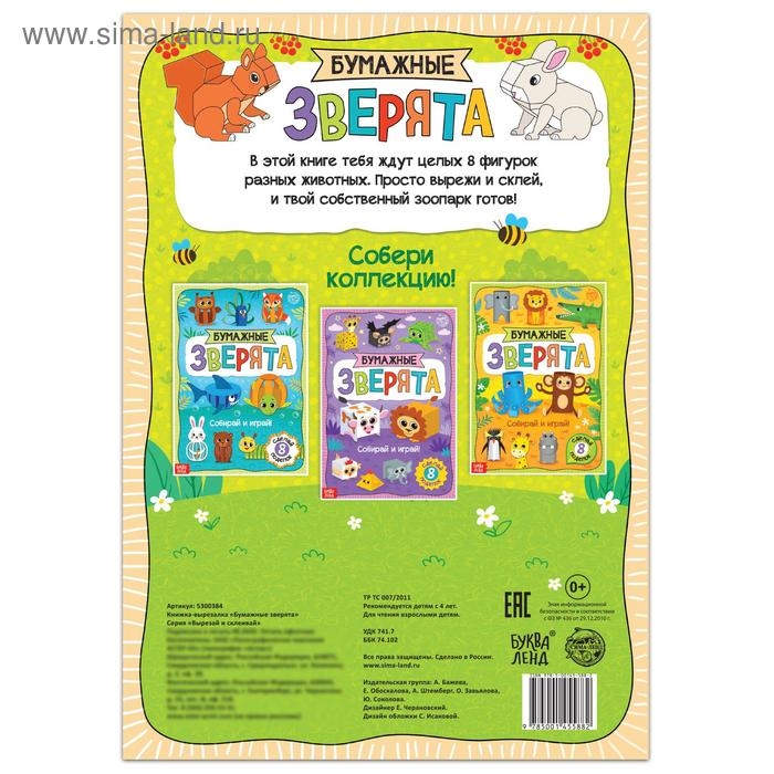 Книжка-вырезалка «Бумажные зверята» — это увлекательное творческое занятие для детей от 4 лет. Создавайте милых зверушек из заготовок! Идеально для детского творчества и развития!