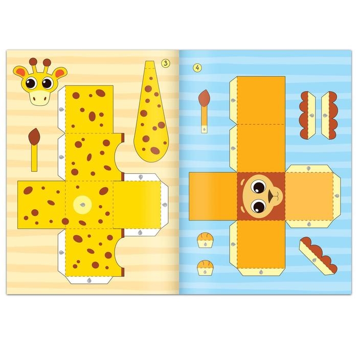 Книжка- вырезалка «Бумажные зверята. Кубики», 20 стр., формат А4, 8 поделок