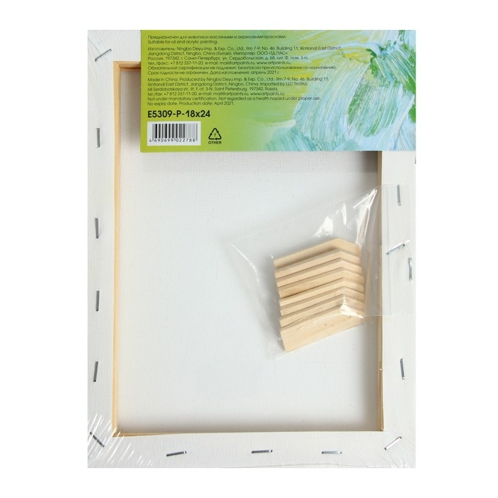 Холст на подрамнике, хлопок 100%, 18 х 24 х 1.8 см, акриловый грунт, мелкозернистый, 280 г/м²