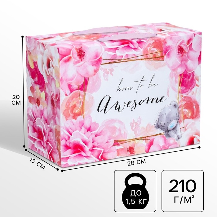 Пакет-коробка, 20x28x13 см "Born to be awesome", упаковка, Me To You
