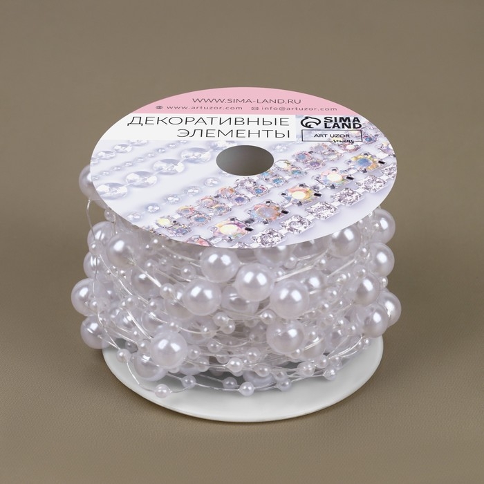 Жемчуг на леске, 3/8 мм, 9 ± 0,5 м, цвет белый