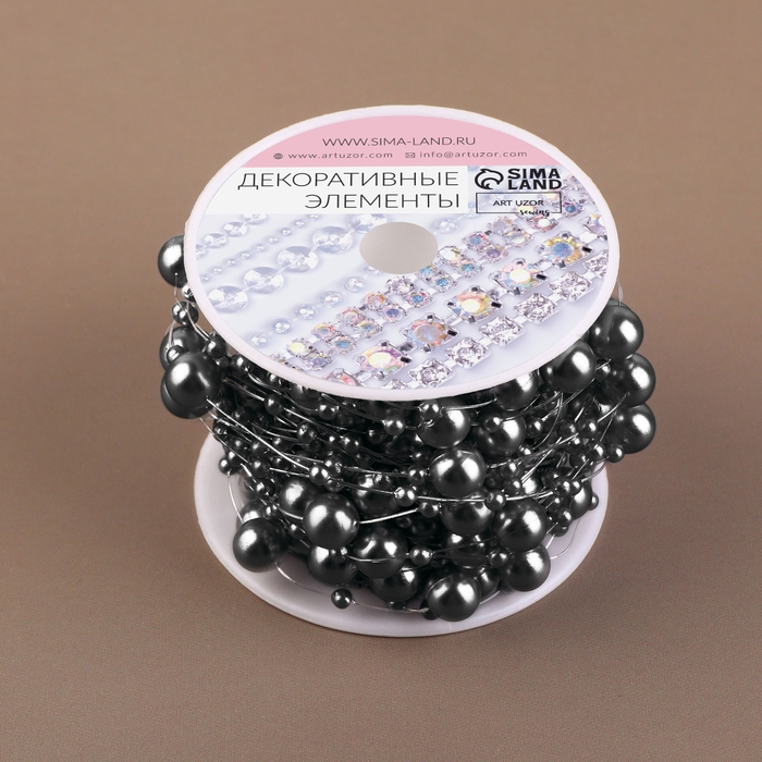 Жемчуг на леске, 3/8 мм, 9 ± 0,5 м, цвет серый