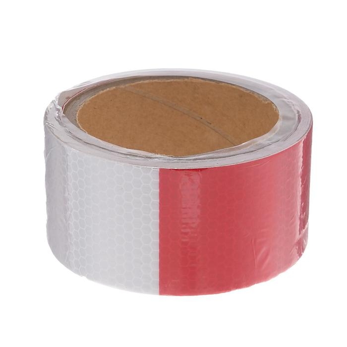 Светоотражающая лента, самоклеящаяся, красно-белая, 5 см х 5 м
