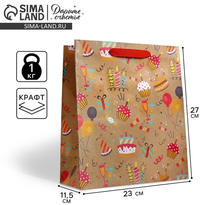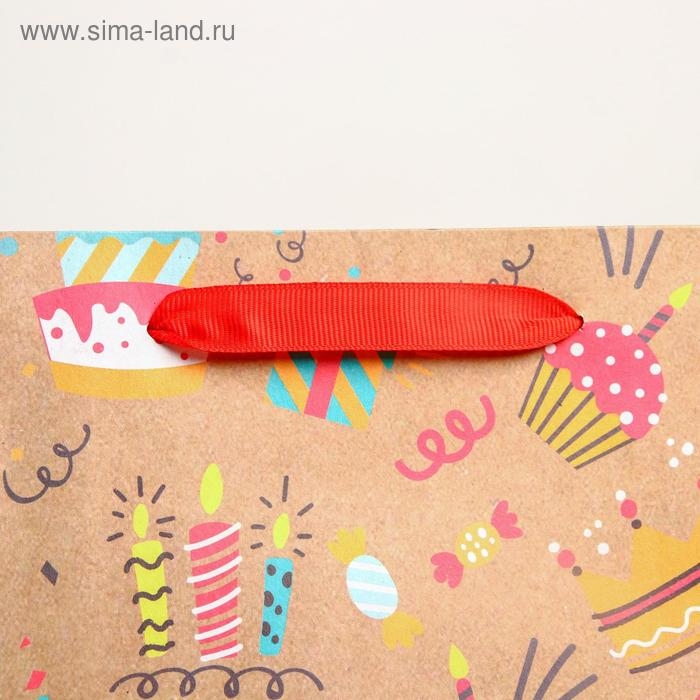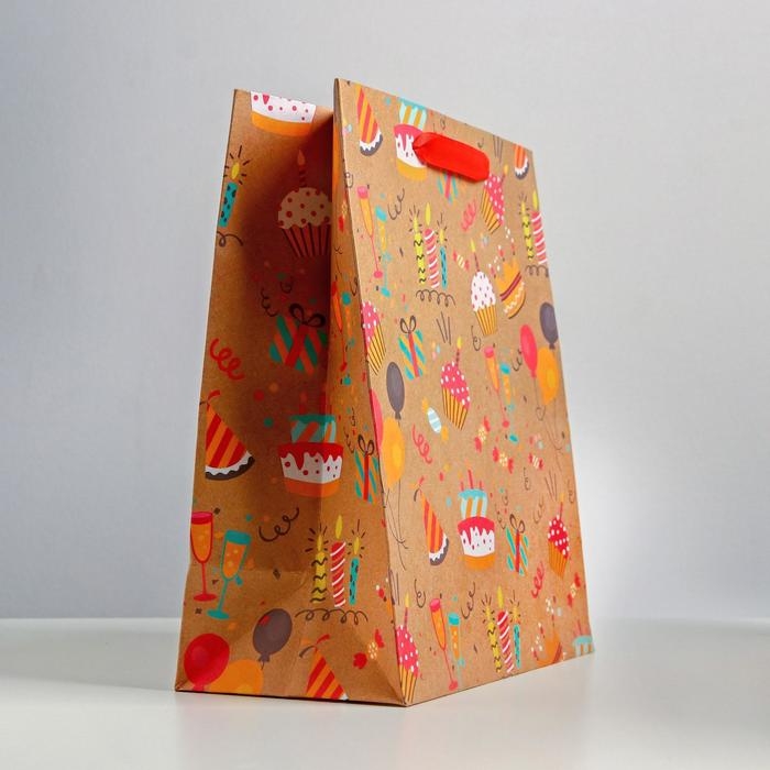 Пакет подарочный крафтовый вертикальный, упаковка, Happy birthday, ML 23 х 27 х 11.5 см