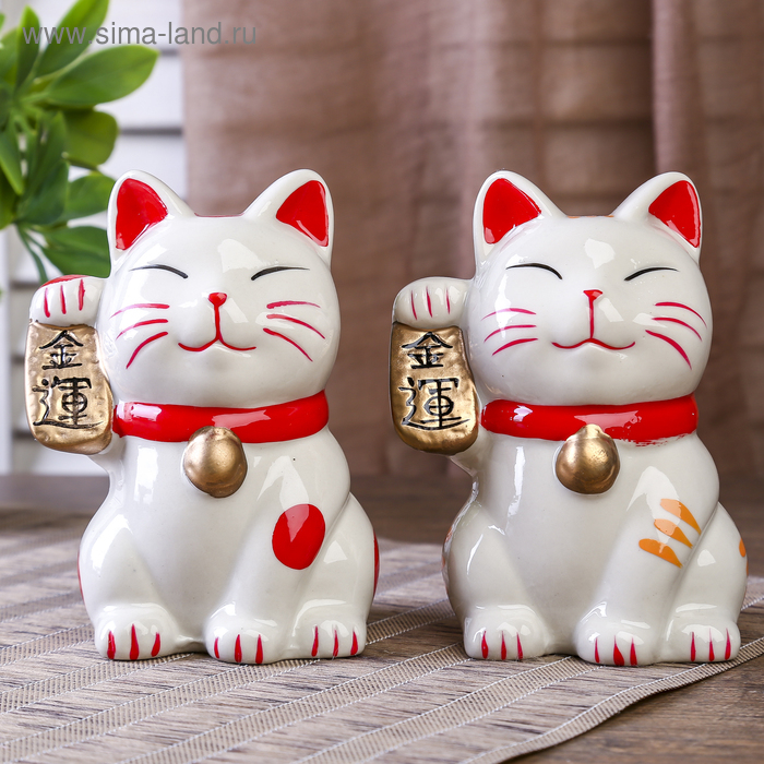 Копилка керамика "Манэки-нэко - иероглиф богатство" 11,5х9х7,3 см