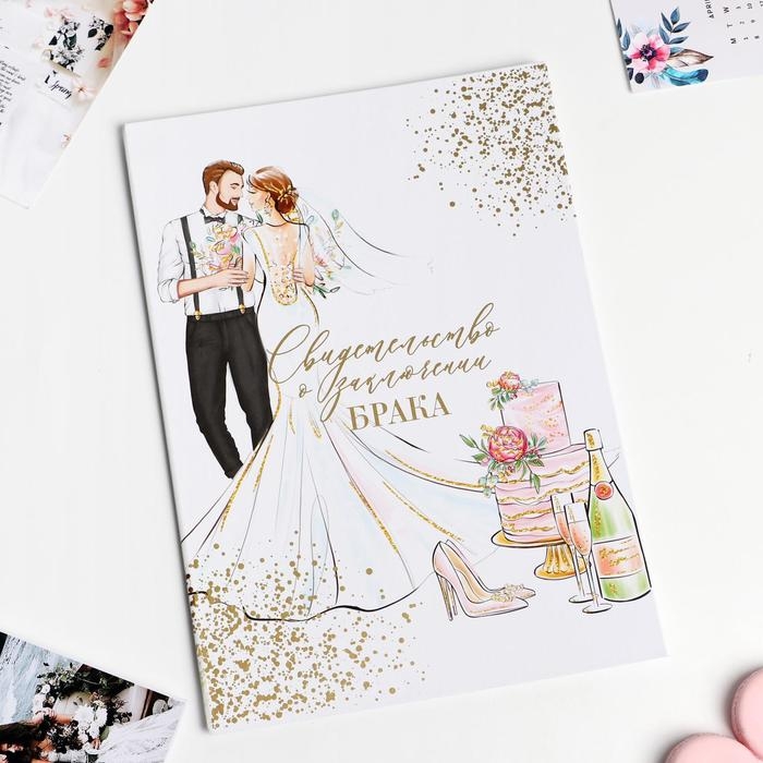 Обложка для свидетельства о заключении брака формата А4 станет лучшим обрамлением для вашего первого совместного документа. Красивая свадебная папка подчеркнёт всю торжественность бракосочетания, она будет напоминать вам о светлом дне свадьбы. В такой папке ваш семейный документ не помнётся, не испачкается и будет сохранять свою красоту всю жизнь. Оригинальный дизайн папки создаст отличное настроение новобрачным и станет хорошим презентом на свадьбу или её годовщину. Папка изготовлена ихз переплётного картона 1,25 мм. Формат обложки А4. Папка с файлом А4.