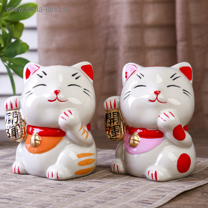 Копилка керамика "Манэки-нэко - иероглиф удача" МИКС 10х8,3х7,2 см