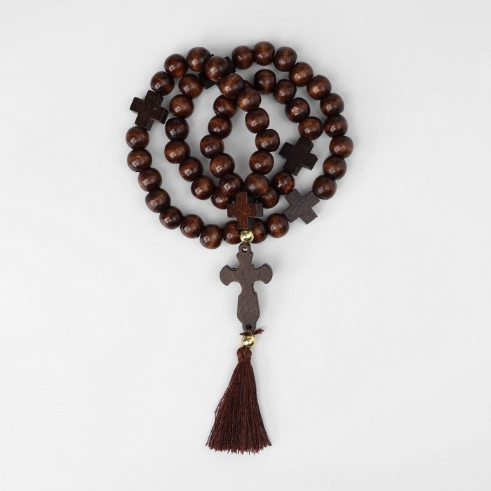 Чётки деревянные «Православные» 50 бусин через крестик, цвет тёмно-коричневый